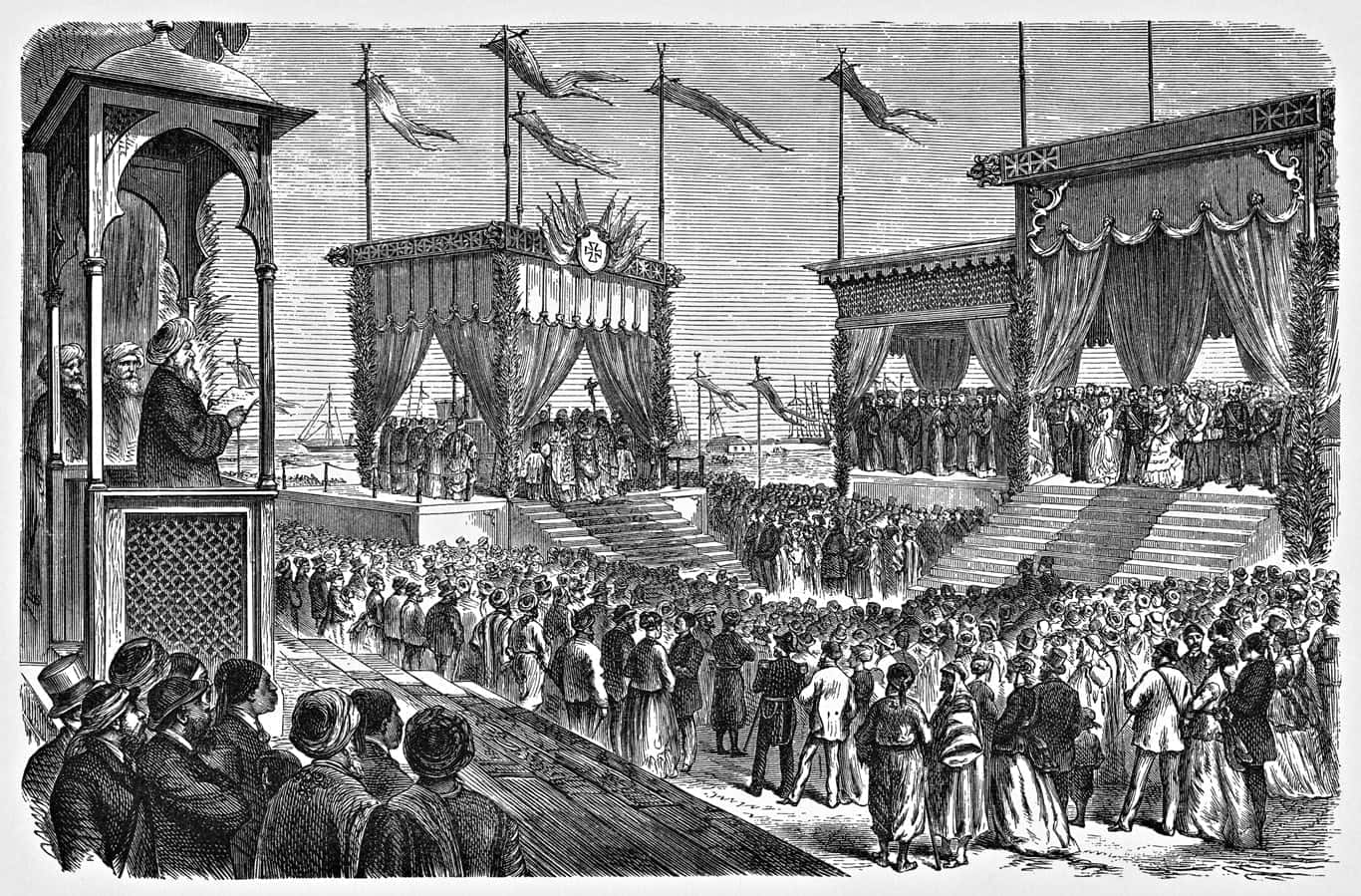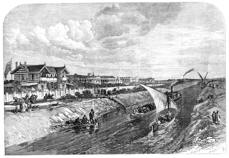 En 1858, à Alexandrie, Ferdinand de Lesseps, soutenu par Saïd Pacha, fonde la Compagnie Universelle du Canal maritime de Suez. Une nouvelle route s'ouvre sur l'Orient.